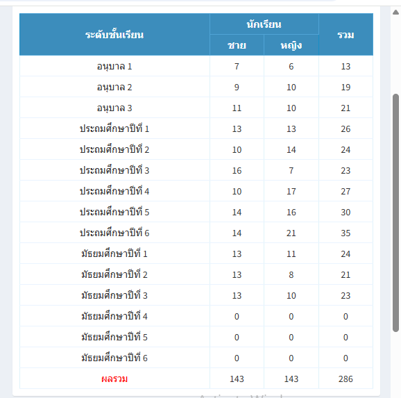 รวมระดับชั้นประถมศึกษา |