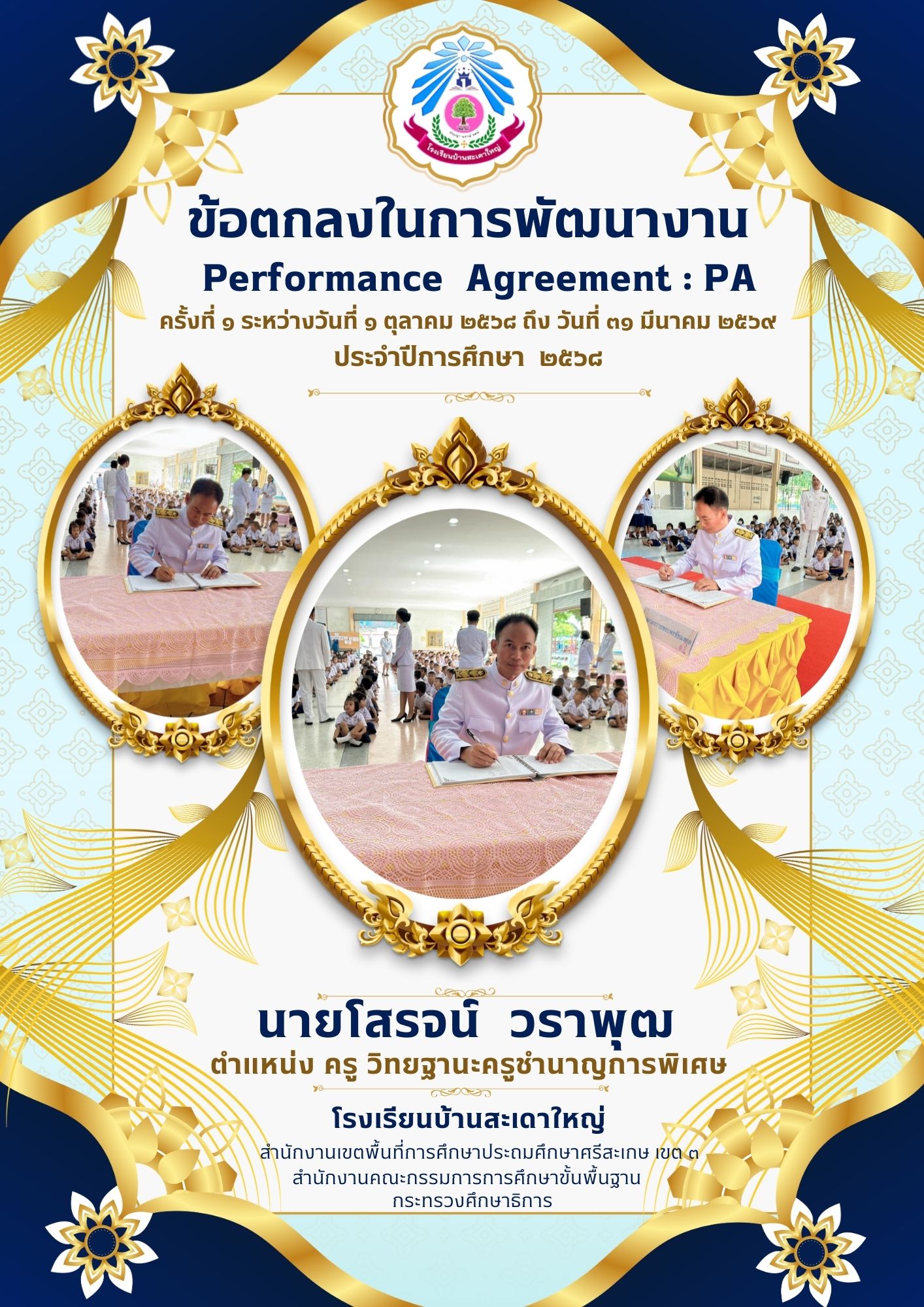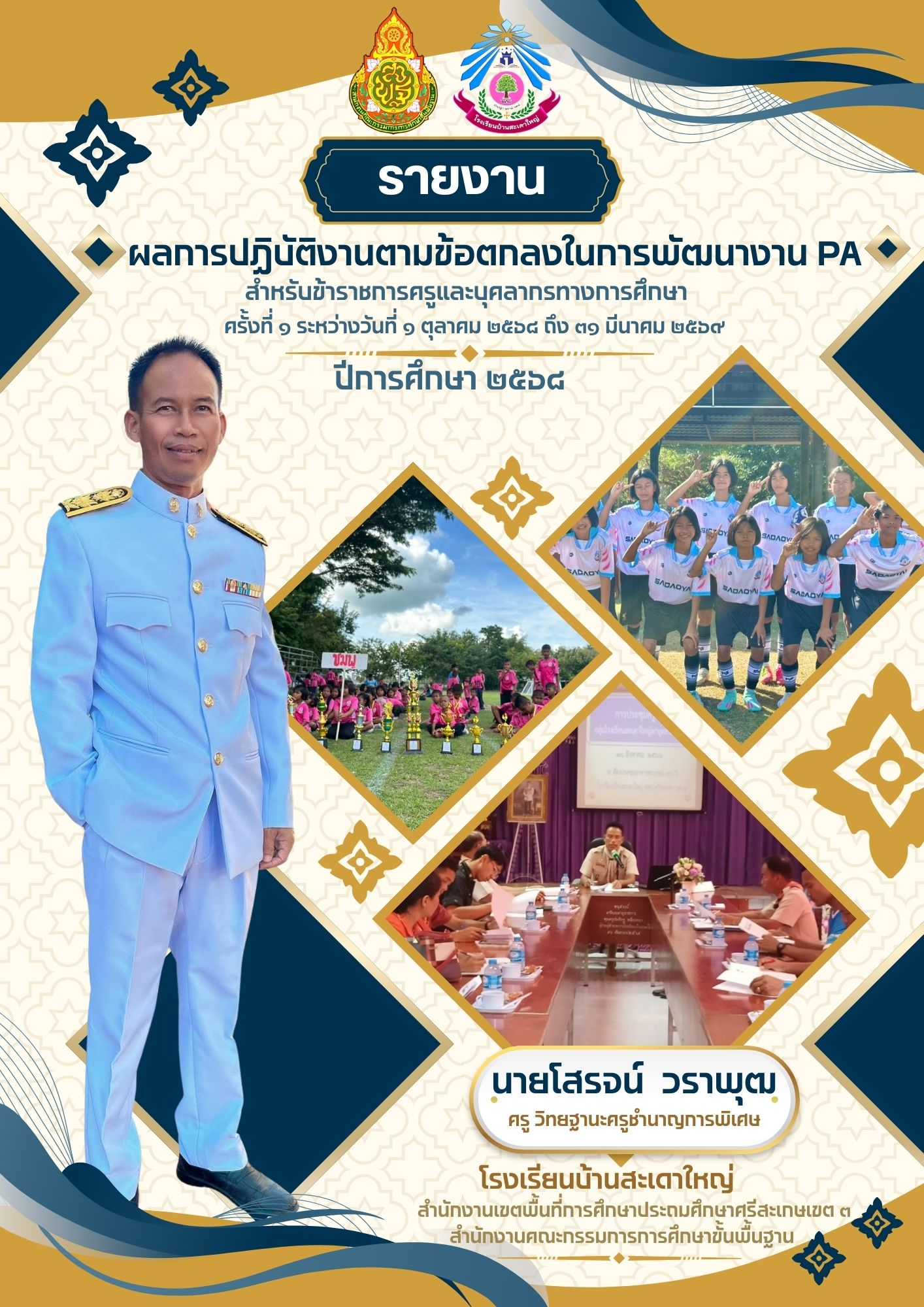 รายงานการผลการดำเนินงานการพัฒนางานตามข้อตกลงในการพัฒนางาน (PA) ของข้าราชการครูและบุคลากรทางการศึกษา ตำแหน่ง ครู วิทยฐานะครูชำนาญการพิเศษ ประจำปีงบประมาณ ๒๕๖๙