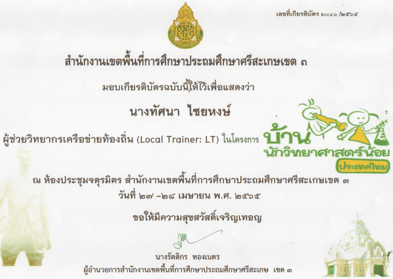 วิทยากรบ้านนักวิทยาศาสตร์น้อย