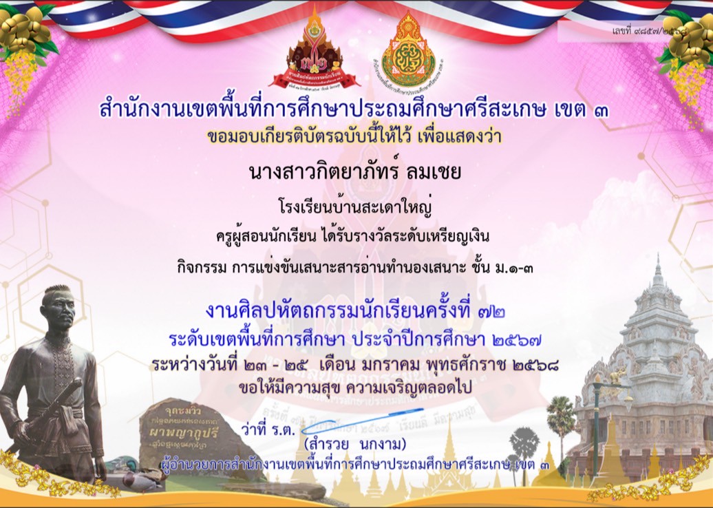 ครูผู้ฝึกสอนกิจกรรมการแข่งขันเสนาะสารอ่านทำนองเสนาะชั้นม.1-3