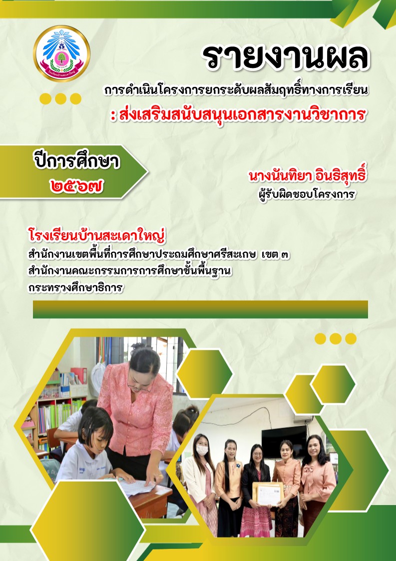 รายงานโครงการยกระดับผลสัมฤทธิ์ทางการเรียน : ส่งเสริมสนับสนุนเอกสารงานวิชาการ ปีการศึกษา 2567