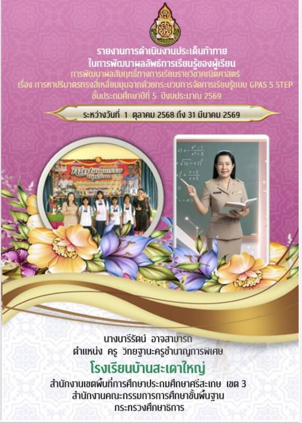 รายงานผลการดำเนินงานประเด็นท้าทาย ในการพัฒนาผลลัพธ์ของผู้เรียน ประจำปีงบประมาณ 2569